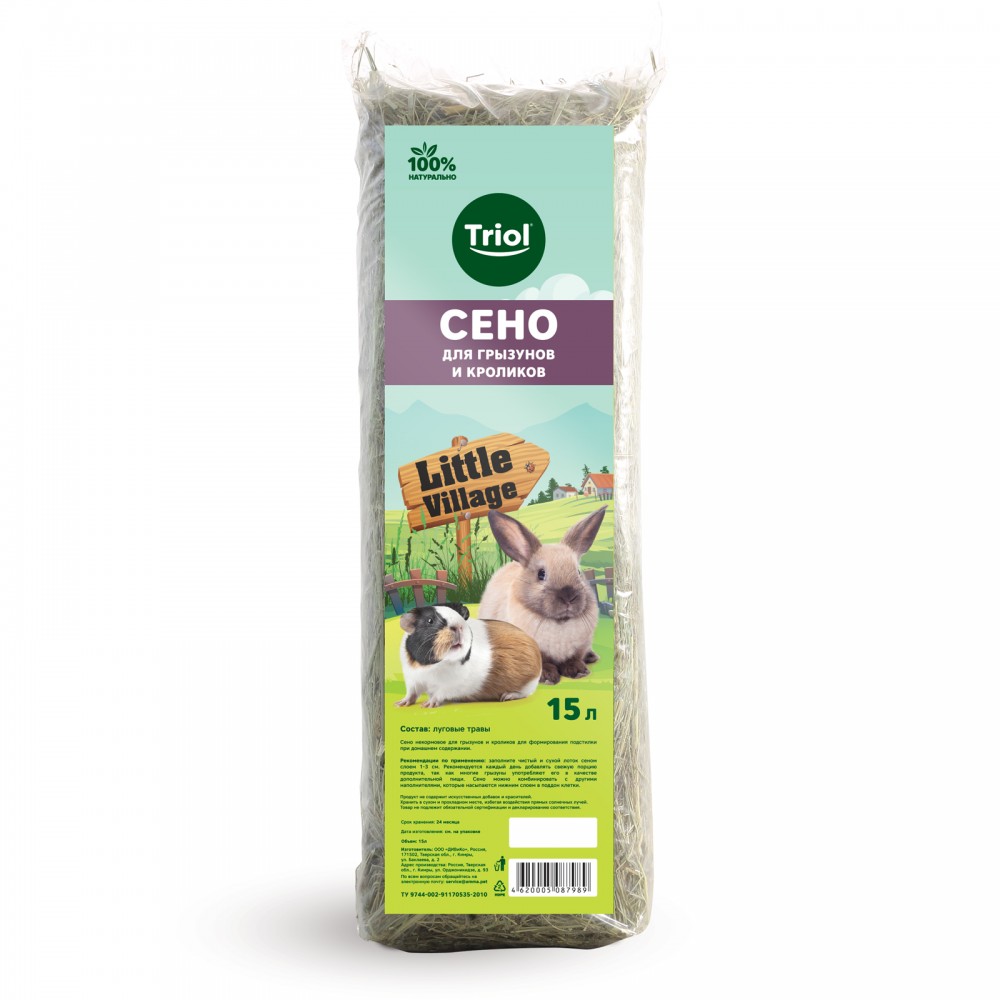 Сено Triol луговое для грызунов и кроликов 15л