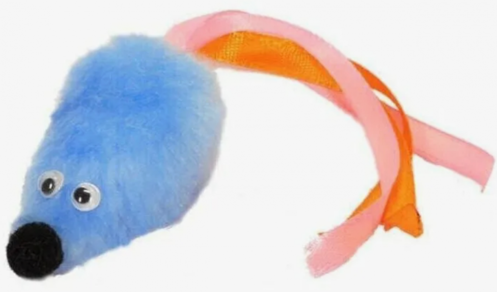 sh-07143 GoSi Игрушка для Кошек "Мышь с кошачьей мятой, хвост из лент" голубая