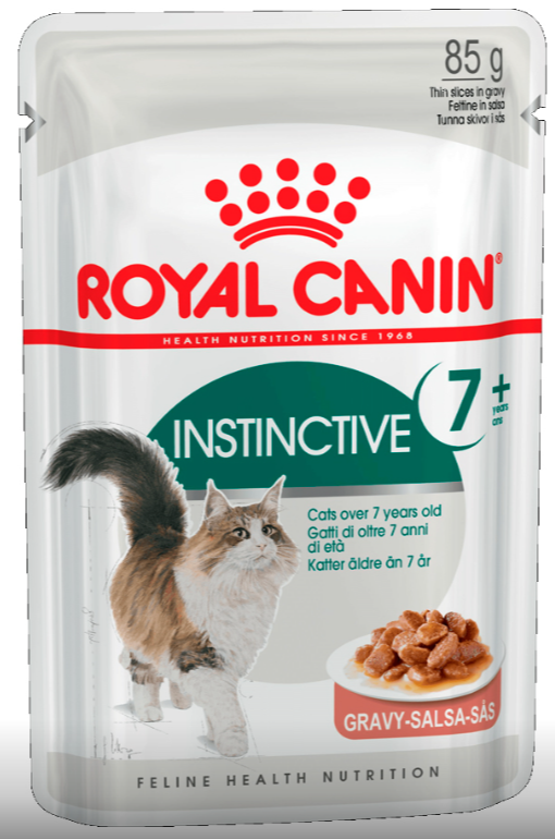 Продукт ROYAL CANIN Instinctive 7+ в соусе разработан специально для кошек старше 7 лет с учетом их особых потребностей в питательных веществах.** **С возрастом физическая активность кошек естественным образом снижается. Для поддержания энергии и активности в состав ROYAL CANIN Instinctive 7+ в соусе включен особый комплекс антиоксидантов.** **Кроме того, со временем могут измениться вкусовые предпочтения животного - ваша кошка может начать отказываться от корма, который раньше ела с удовольствием. Поэтому ROYAL CANIN Instinctive 7+ в соусе имеет особый макронутриентный профиль, который интуитивно выбирают кошки в зрелом возрасте.** **Благодаря умеренному содержанию фосфора продукт ROYAL CANIN Instinctive 7+ в соусе способствует поддержанию функции почек.** **Для удовлетворения индивидуальных потребностей каждой кошки ROYAL CANIN Instinctive 7+ выпускается также в виде кусочков в желе.** Состав: мясо и производные животных, злаки, экстракты растительного белка, производные растительного происхождения, минералы, моллюски и ракообразные. Подробнее