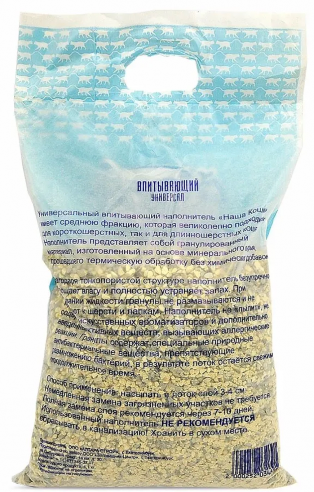 Впитывающий наполнитель для короткошерстных котят и кошек. Размер гранул: Средние (2-6мм) Тип наполнителя: Впитывающий