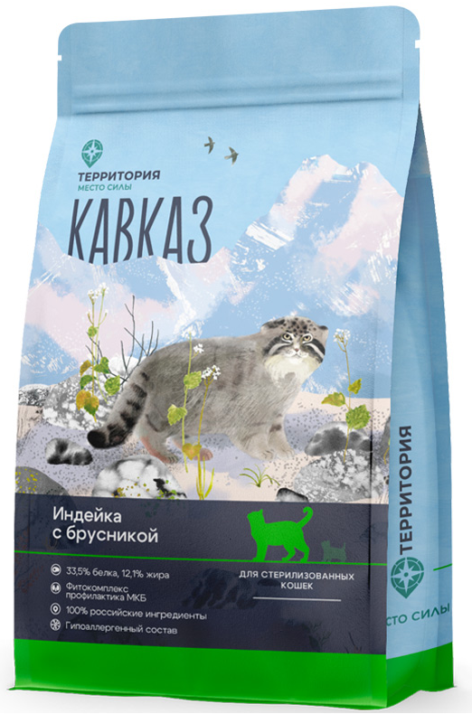 Корм Территория Кавказ для стерилизованных кошек, индейка с брусникой