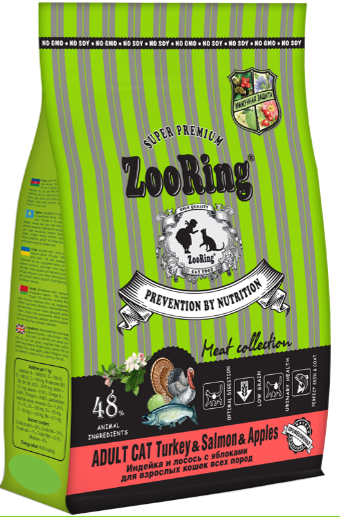 Корм Зооринг МАКС ИНДЕЙКА/ЛОСОСЬ с Яблоками для кошек