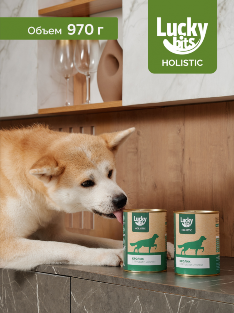 Консервы для собак Lucky bits кролик с грушей и цукини, 970 г