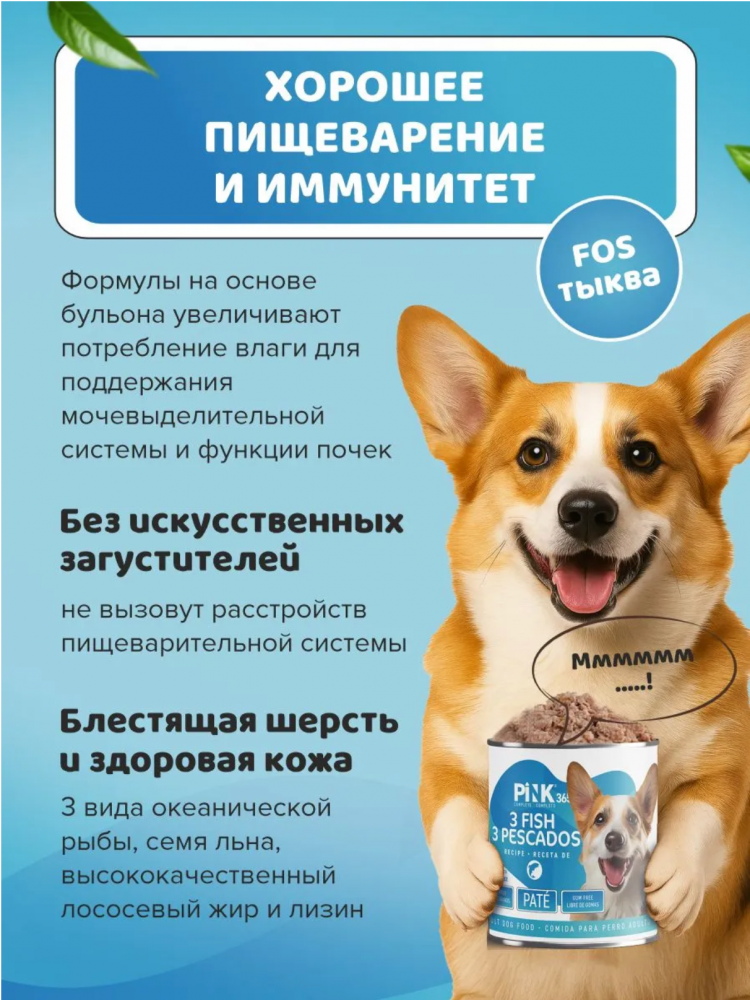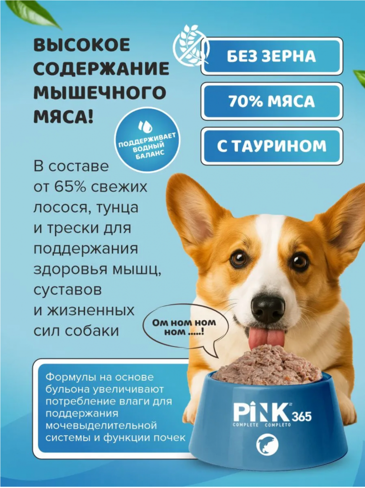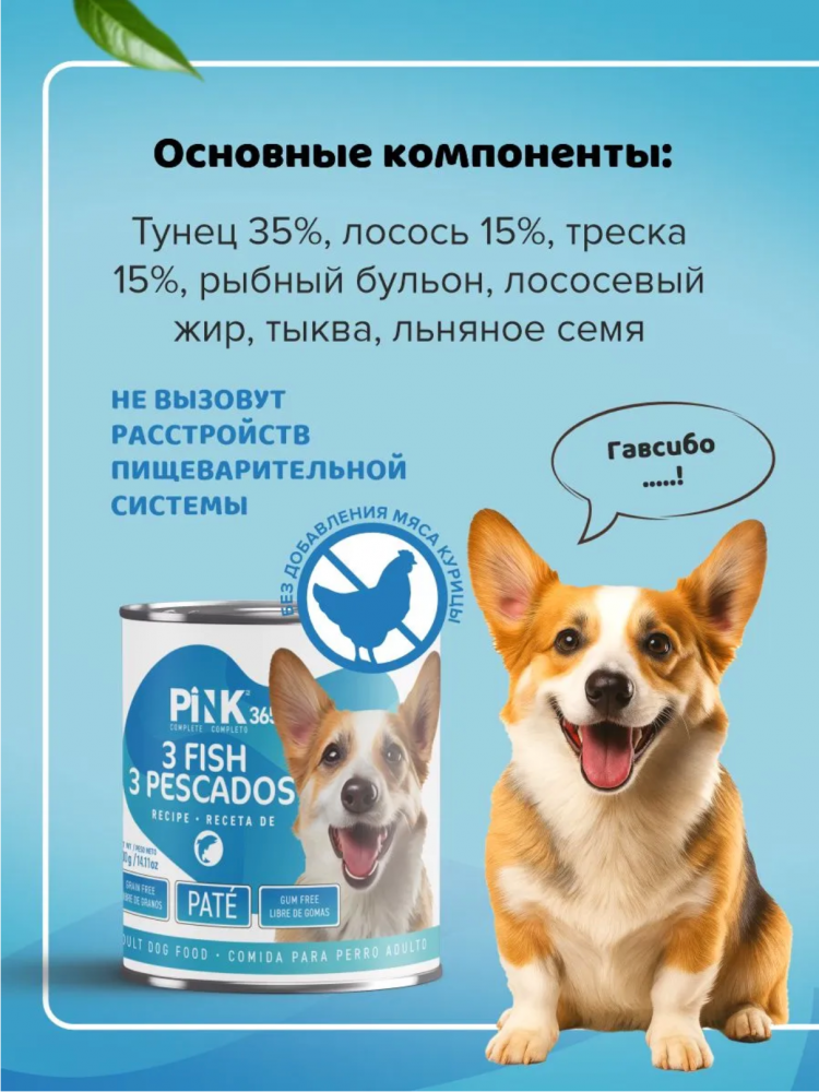 Консерва Пинк Лосось, тунец, треска полнорационная для собак 400 г: ПАШТЕТ