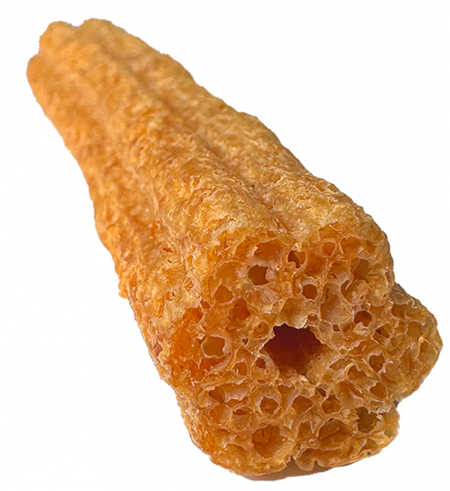 Состав: куриная грудка, картофельный порошок, крахмал тапиоки, глицерин, желатин, растительный белок, гороховая мука, куриная печень, дрожжи, соль, карбонат кальция, разрешенные ЕС красители. Питательная ценность в 100 г (средние значения): сырой белок 12,0% сырой жир 1,0% сырая клетчатка 1,0% сырая зола 2,0% влага 11,0%