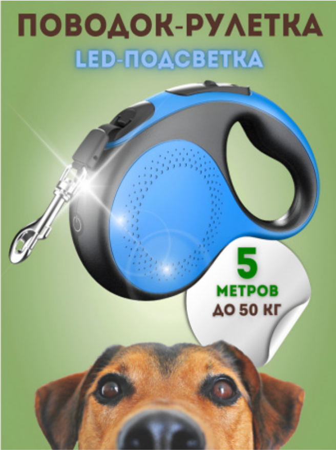 Рулетка-поводок со светодиодной подсветкой для собак «Чистый котик», 5 м/50 кг