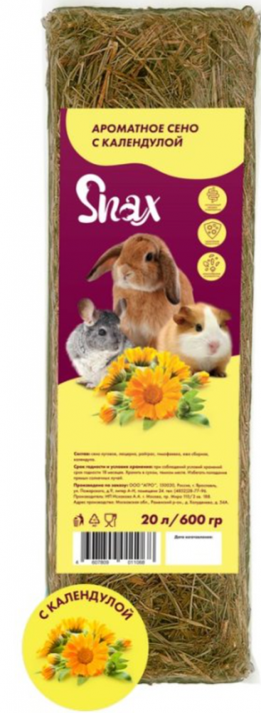 Ароматное сено "Snax" изготовлено из экологически чистых луговых трав с добавлением цветков календулы. Цветки календулы содержат разнообразные эфирные масла, дубильные вещества, органические кислоты, каротин, витамины А и С. Употребление в пищу цветков календулы способствует профилактике болезней желудочно-кишечного тракта и укреплению организма. Добавление сена в рацион грызуна обеспечивает оптимальный процесс пищеварения и стимулирует иммунную систему. Использовать сено можно также в качестве подложки, что защитит от неприятного запаха и сделает проживание питомца более комфортным. Подробнее