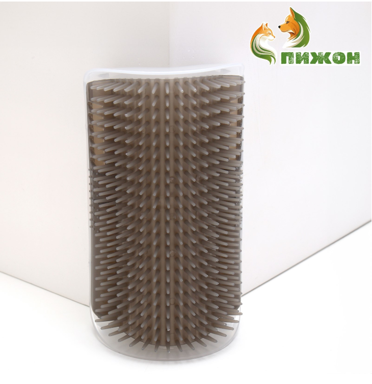 Массажер прост и лёгок в использовании - достаточно просто прикрепить его к стене или углу с помощью двух клейких лент, кошка сама будет чесаться об него. Ваш питомец будет получать удовольствие, пока пластиковые щетинки удаляют отмершую шерсть.