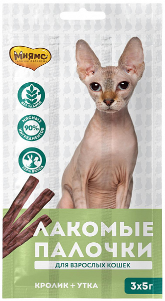 Лакомство для кошек Мнямс лакомые палочки с уткой и кроликом 5г 3шт