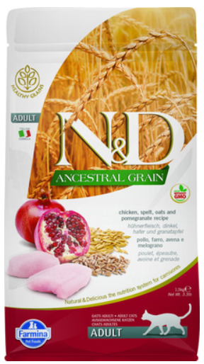 Корм FARMINA для взрослых кошек, курица с гранатом и спельтой, низкозерновой