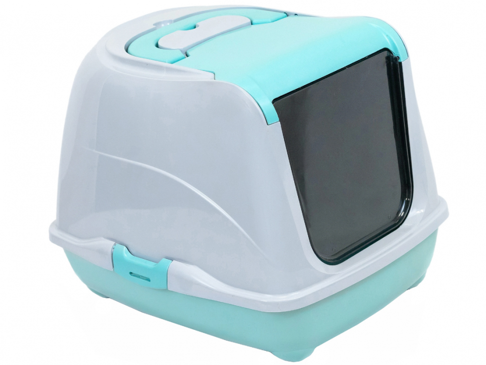 Homecat туалет для кошек закрытый с дверцей, бирюзово-серый, 50 х 38 х 37 см