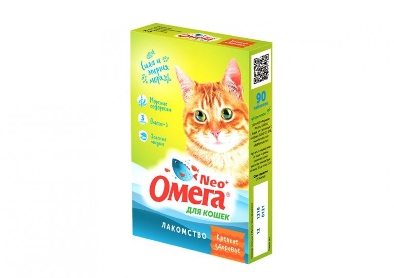 Улучшенное отечественное лакомство витаминизированное для кошек, приготовленное из натуральных ингредиентов, обладающее повышенной поедаемостью и эффективностью. Рекомендуется в качестве дополнительного питания и источника биологически активных веществ, а также для поощрения и баловства Ваших питомцев. Назначение продукта улучшает работу желудочно-кишечного тракта; препятствует развитию ожирения; препятствует возникновению аллергических реакций; усиливает пигментацию носа и шерсти; помогает выработать полезные привычки; поддерживает активный образ жизни; снижает последствия стрессов. Действие Действие лакомства мультивитаминного «Омега Neo» обусловлено входящими в его состав биологически активными веществами и незаменимыми жирными кислотами класса Омега-3 печени кальмара. Незаменимые жирные кислоты класса Омега-3 не вырабатываются организмом животного и не содержатся в достаточном количестве в корме, однако необходимы для обеспечения правильного баланса жирных кислот в организме и предотвращения многих заболеваний. Они являются важным, наиболее концентрированным источником энергии; улучшают структуру кожи и шерсти; повышают усвояемость витаминов А и Е; регулируют жировой обмен; улучшают кровоснабжение мозга; помогают справиться с воспалительными процессами. В состав лакомства мультивитаминного «Омега Neo» жирные кислоты Омега-3 введены в виде эфиров, благодаря чему они быстро и легко усваиваются организмом животного и включаются в обменные процессы. В состав лакомства входят дрожжи - натуральный источник целого комплекса жизненно важных для животных веществ, богатейший природный источник витаминов группы В и аминокислот. Дрожжи обладают общеукрепляющим действием, поддерживают в здоровом состоянии кожу и шерсть, способствуют быстрому восстановлению сил после операций и болезни, повышают иммунитет. Рекомендуются при различных инфекционных, желудочно-кишечных заболеваниях, малокровии, медленном заживлении ран. Морские водоросли - сбалансированный природой источник витаминов, макро- и микроэлементов, включая органически связанные йод и селен; аминокислот; углеводов; полисахаридов и ферментов. В результате применения лакомства укрепляется иммунитет, улучшается внешний вид кожи и шерсти. Препарат нормализуют деятельность сердечно-сосудистой, нервной, иммунной системы. Состав продукта В 1 таблетке содержится: белки 33%, жиры 4%, зольные компоненты, не менее 14%, влага, не более 9%, кальций, не менее 4,1%, фосфор, не менее 1,9%, морские водоросли 2 %, таурин 45 мкг; этиловые эфиры незаменимых жирных кислот класса Омега-3, не менее 1,5 мг. Ингредиенты: Дрожжи; минеральные вещества; сухое обезжиренное молоко; морские водоросли; этиловые эфиры незаменимых жирных кислот класса Омега-3 печени кальмара; таурин; экстракт семян орлеанового дерева; автолизат дрожжей; гидролизаты печени птицы, рыбного протеина; люпин сладкий. Применение и дозировка: Рекомендуется 3-6 таблеток ежедневно в течение всего года. Побочного действия на организм кошек не установлено. Подробнее