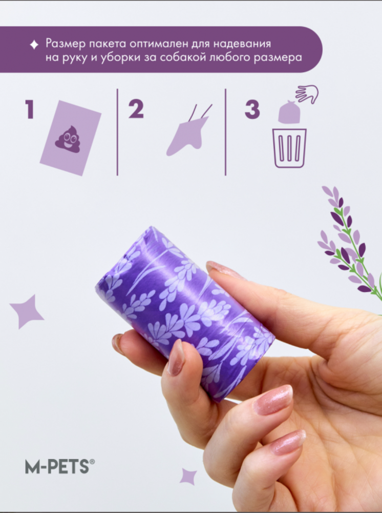 M-PETS Пакеты гигиенические для выгула собак, с ароматом лаванды, 60 шт