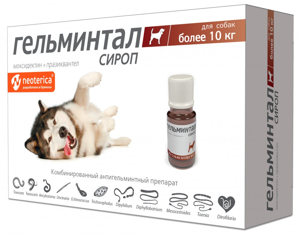 Гельминтал Сироп противопаразитарное средство для собак более 10 кг